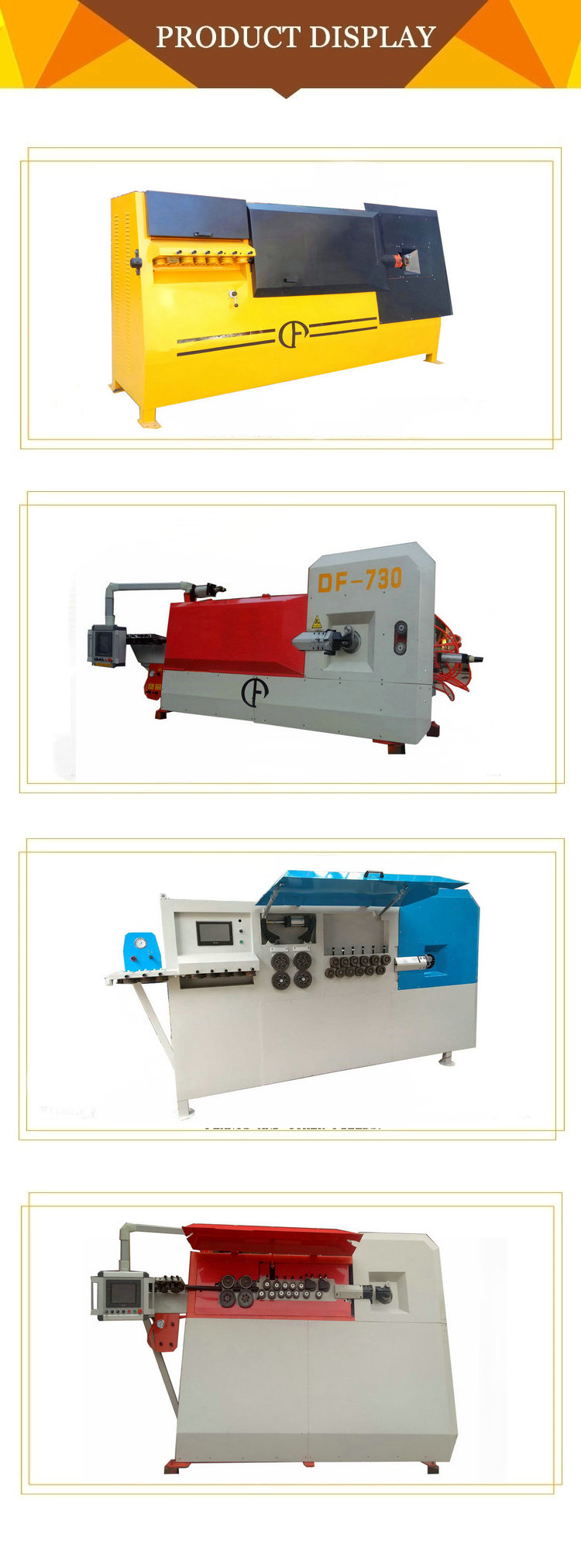 Тип JIAXIN-A автоматски ЦПУ свиткување челични обрачи машина од хранење, descating, зацрвстувањето се протега криви форма, намалување на различни процеси еден жив, директно произведени различни спецификации на различни големини, целосно ги исполнуваат дизајн барања. Различни спецификации можат да се обработуваат во разни големини квадрат, правоаголник, дијамант, многуаголник, итн. Автоматски може да го заврши зацрвувањето на челикот, должината, обликувањето и сечење на свиткување и други функции, со што се заштедува време, може да се постигне висока продуктивност, автоматски, непрекинато операција за обработка.